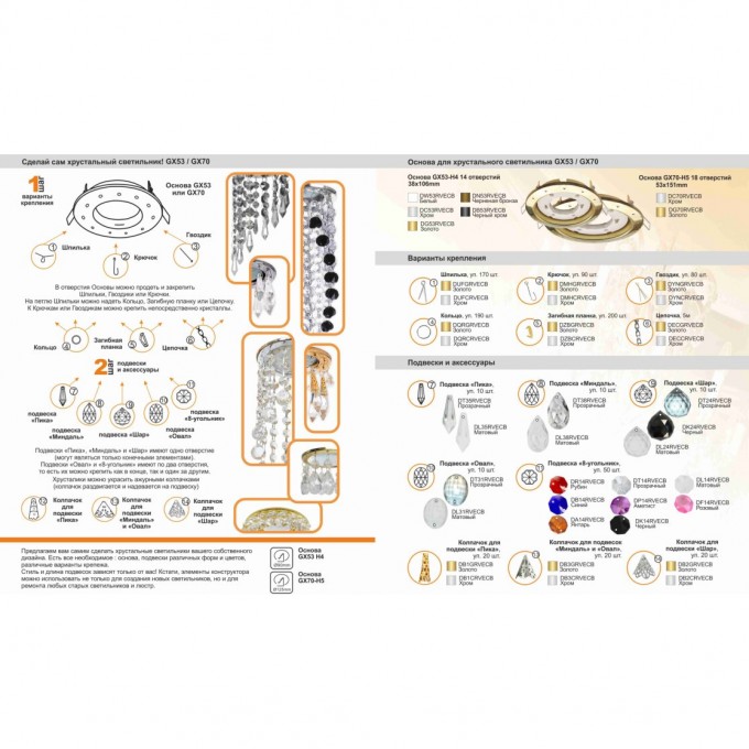 Набор ECOLA "Сделай сам Хрустальный светильник" Колпачок для подвесок Миндаль и Овал, Хром, упаковка 20шт DB3CRVECB